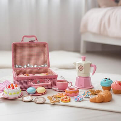 Notre sélection comprend aussi d'autres jouets d'imitation comme la cuisine complète ou le service à thé qui complètent parfaitement l'univers de la dinette.