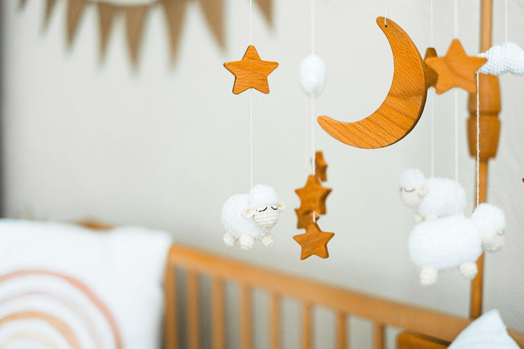 Découvrez notre Mobile de lit | Musical, un choix parfait pour accompagner les premiers mois de votre enfant avec ses mélodies douces et ses jolies figurines suspendues.